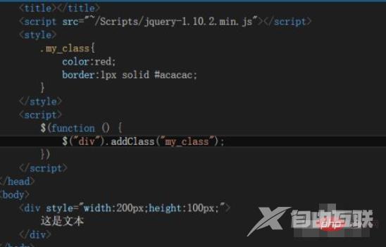 jq动态添加动态css样式的方法:首先准备jquery库文件,并声明一个class样式;然后准备一个事件加载初始化的方法,并直接用匿名函数;接着addClass方法给div元素添加class;最后通过css方法进行级联的更改。