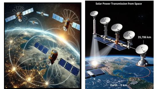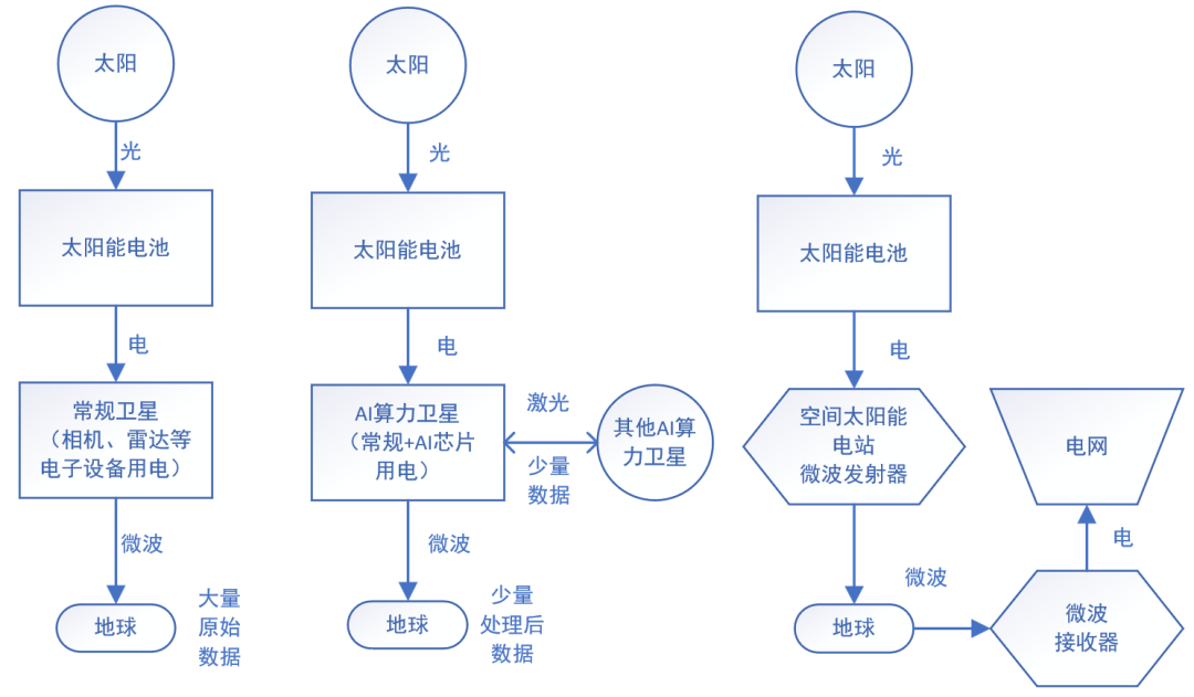图3 算力卫星(算力上天)、空间太阳能电站(电站上天)