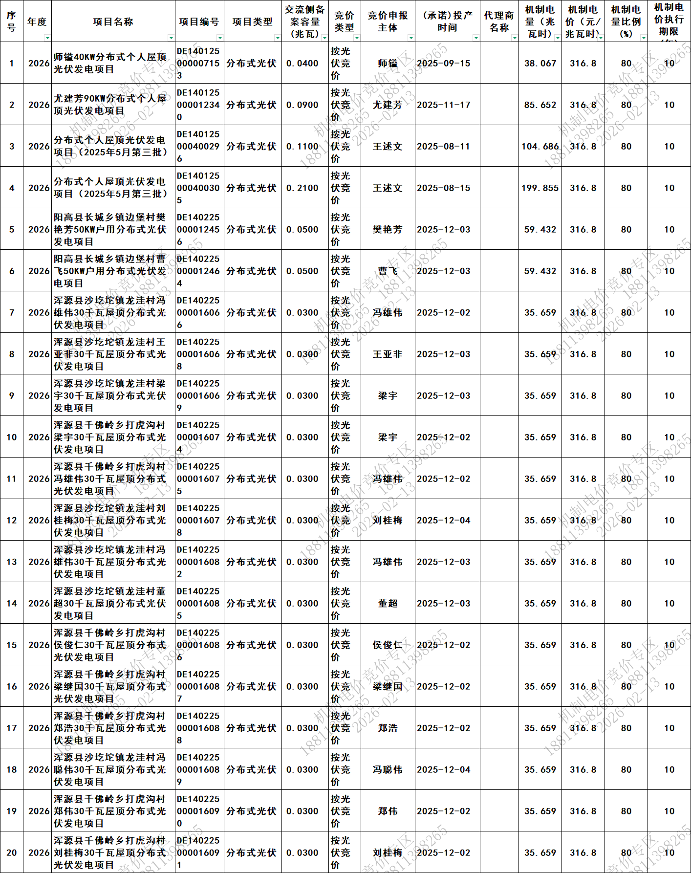 根据省发展改革委、省能源局、山西能源监管办《关于印发<深化新能源上网电价市场化改革 促进新能源高质量发展实施方案>的通知》(晋发改商品发〔2025〕322号)、《关于印发<增量新能源项目机制电价实施细则(试行)>的通知》(晋发改规发〔2025〕6号)等文件规定,我省组织开展了2026年新能源机制电价竞价工作。现将竞价结果及有关事项通知如下: