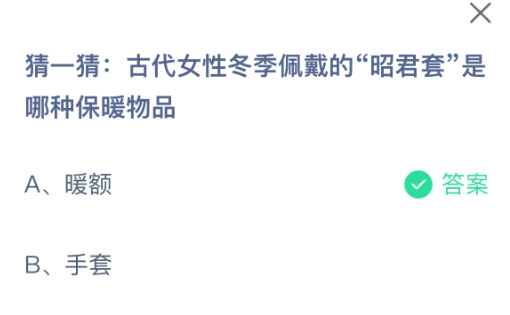 以上就是猜一猜:古代女性冬季佩戴的“昭君套是哪种保暖物品?支付宝蚂蚁庄园2026年2月14日答案最新,更多相关攻略,请关注更新!