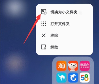 5、同样的,如果要改回去,那长按文件夹后选择“切换为小文件夹”即可。