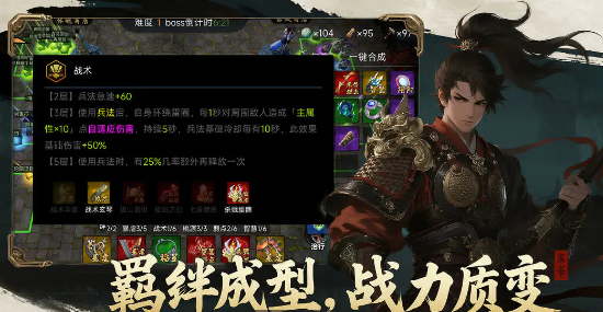 关卡设计强调探索多样性:每次进入副本,敌方配置、随机事件、路线分支及宝箱分布均动态生成。玩家可依战况自主选择推进策略,拾取差异化装备,并激活武将间专属羁绊效果,构建个性化战斗流派。武将系统覆盖三国时期逾百位历史名将,包括赵云、吕布、诸葛亮等代表性人物;人设考据严谨,技能设计深度结合人物典故——如吕布专属技“无双乱舞”,还原其骁勇无匹的战场表现。全武将均可培养至满阶,无属性锁定或永久废将设定,保障长期养成价值。