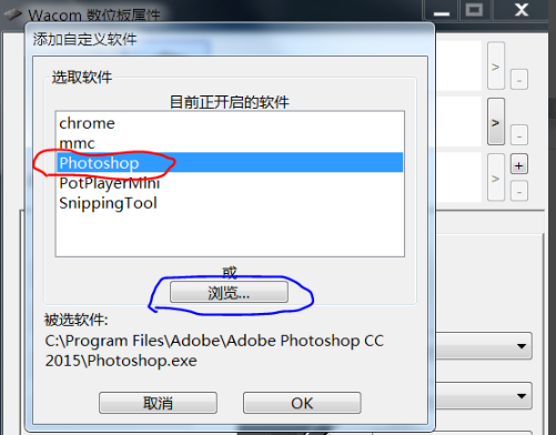 ps:如果ps没有出现在列表中,可以点击浏览定位“photoshop.exe”安装位置。