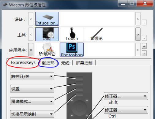 4、expresskeys一共拥有8个快捷键,设置的方法也都是相同的。