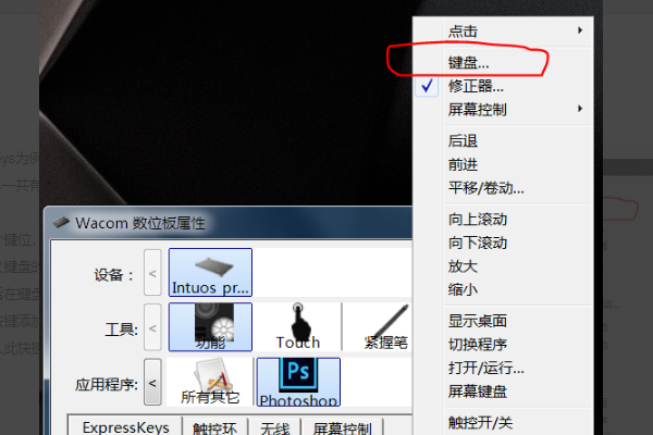 1、首先连接数位板,并且运行ps软件,在开始菜单或者控制面板里面打开跟着驱动一起安装的“wacom数位板属性”。