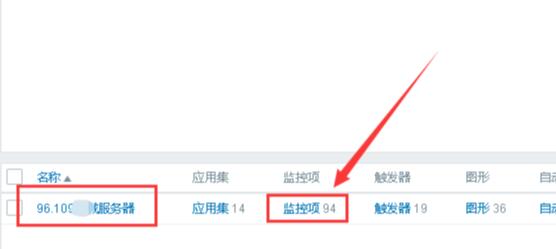 2、接着找到需要监控的主机,点击“监控项”