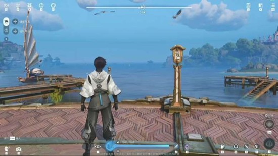 玩家初入王者荣耀世界,首先会抵达一个名为白云港的地方。这里是所有玩家进入稷下学院的第一站港口,在港口处会看到一个手持欢迎牌子的墨子机关人。穿过港口,玩家能看到许多可以进行交互的建筑,以及各种灵感来源于王者荣耀、造型独特的景观。