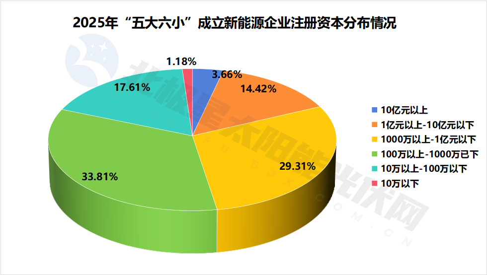 在总量收缩的同时,新设新能源公司的结构也发生了显著优化。一方面,从注册资本分布看,投资重心向较大规模企业倾斜。2024年与2025年注册资本在 “1亿元以上” 的企业占比都在18%以上,其中不乏大型区域投资平台;1000万至1亿元的中型规模企业占比从2024年的26.20%更是提升至29.25%,但100万至1000万的小型规模企业占比则从37.44%下降至33.73%。