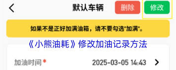 通过以上步骤,你就可以轻松地在小熊油耗中修改上次数据了。这对于更精准地记录车辆油耗情况非常有帮助,能让你更好地了解车辆的燃油消耗状况,从而合理规划出行和加油计划。