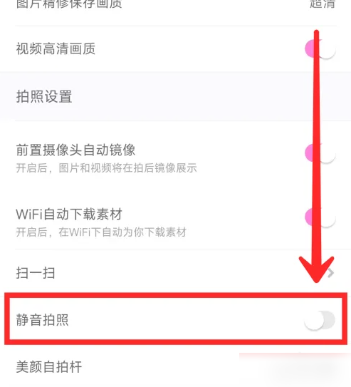 然后在我的拍照设置页面,将【静音拍照】的开关打开,即可关闭拍照声音。