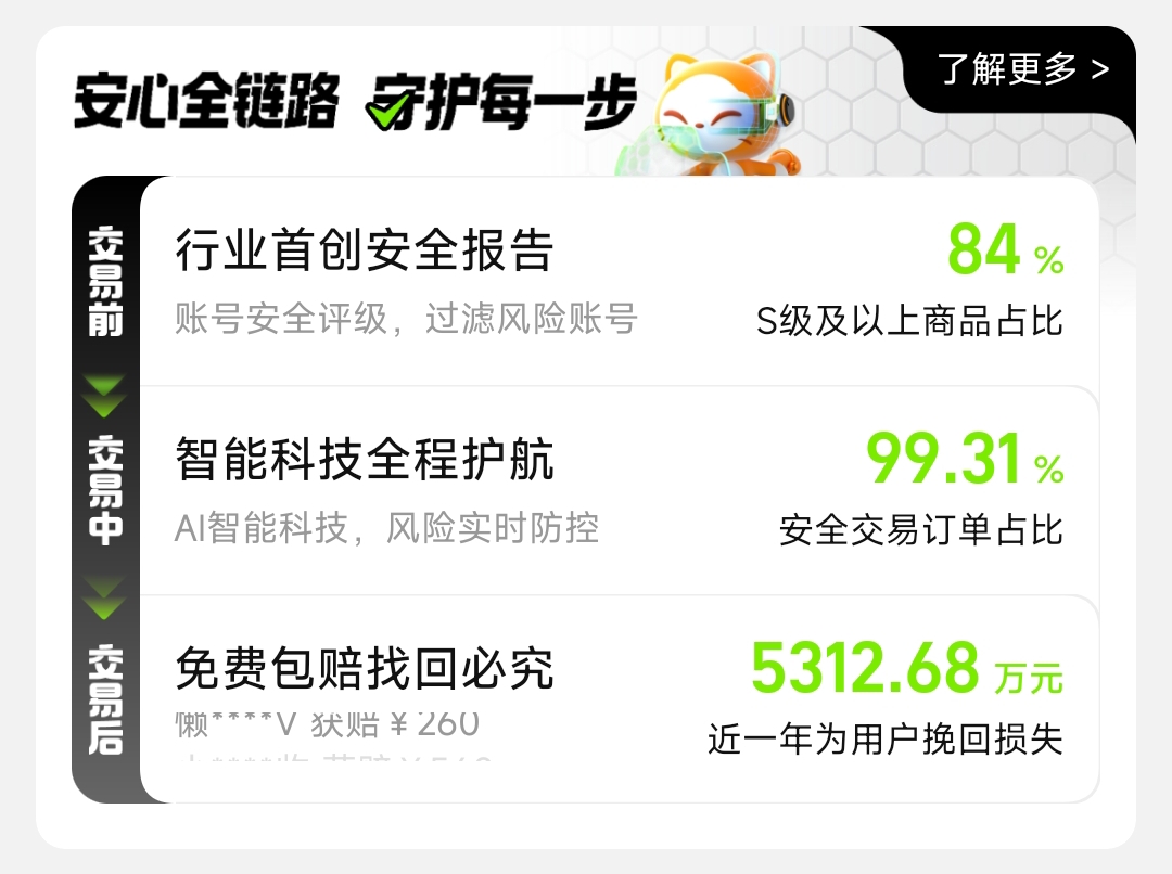 综上所述,在评估“卖账号的平台哪个安全”这一问题时,凭借其隶属阿里巴巴灵犀互娱的合规主体资质、覆盖全部成品号的永久包赔机制,以及依托大数据建模的精准估值能力,形成了差异化竞争优势。三项核心能力共同构成用户资产交易的安全底座,切实保障玩家多年游戏投入所沉淀的虚拟资产价值得以稳妥兑现。