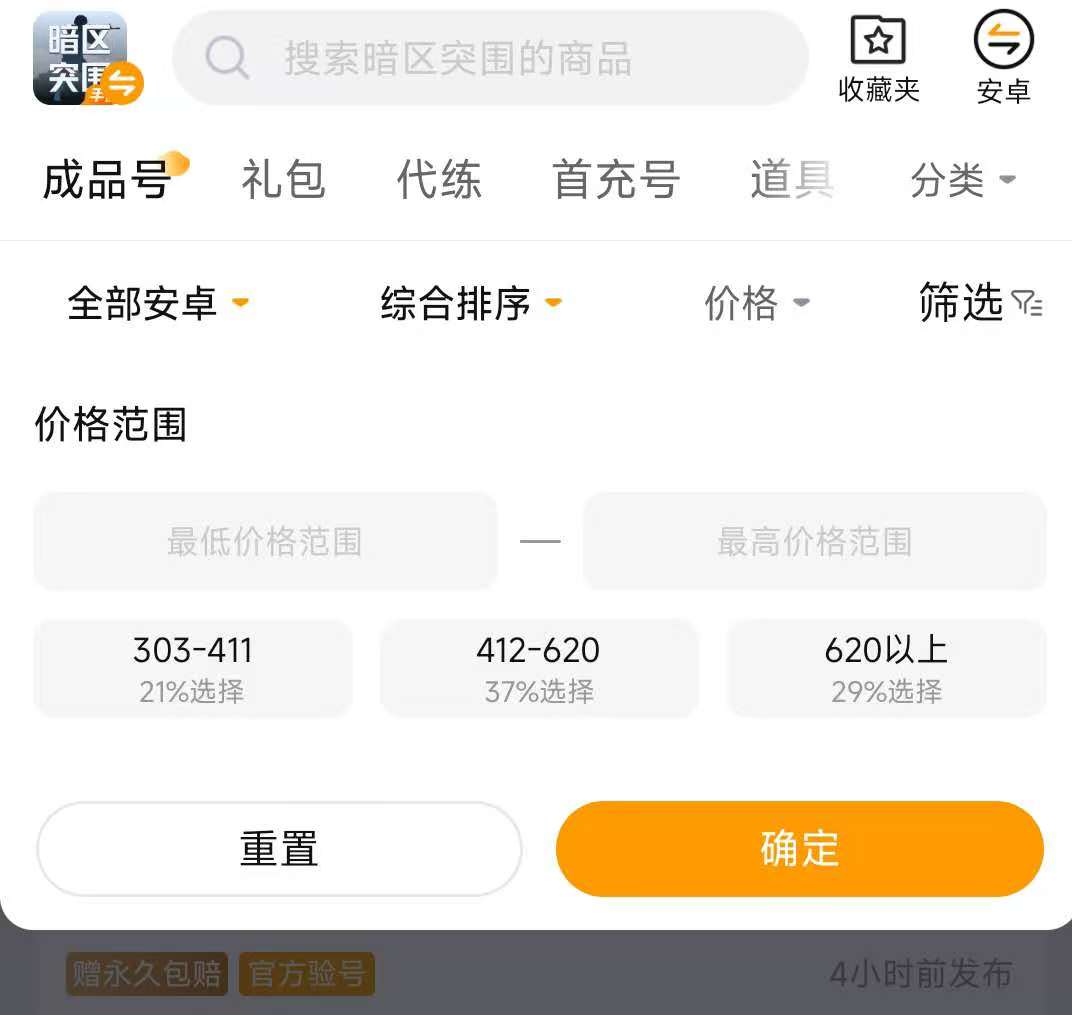 日均活跃账号交易量庞大,已形成覆盖全生命周期的价格数据库。这一特性使其不仅是一个交易平台,更成为实用性强、响应快的动态估值系统。玩家可先在平台内筛选与自身账号等级、战备配置、物资储备、成就进度等维度高度相似的成交案例,作为定价基准;再结合账号是否绑定实名、有无违规记录、是否含稀有道具等个体差异,上下微调报价。根据近期平台成交数据统计,暗区突围账号在400元至600元区间内的成交转化率最高。