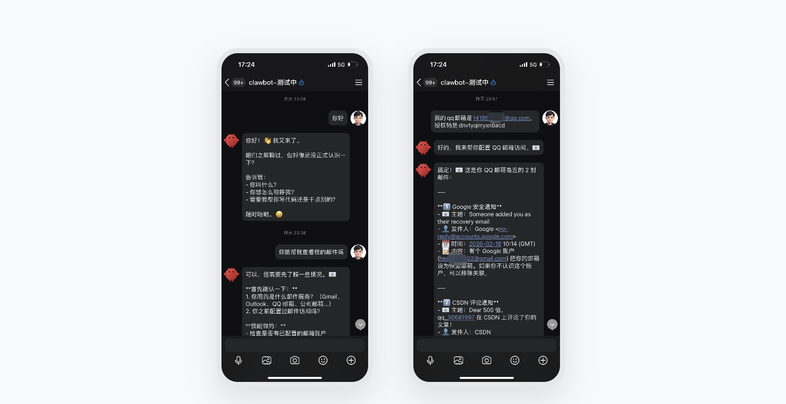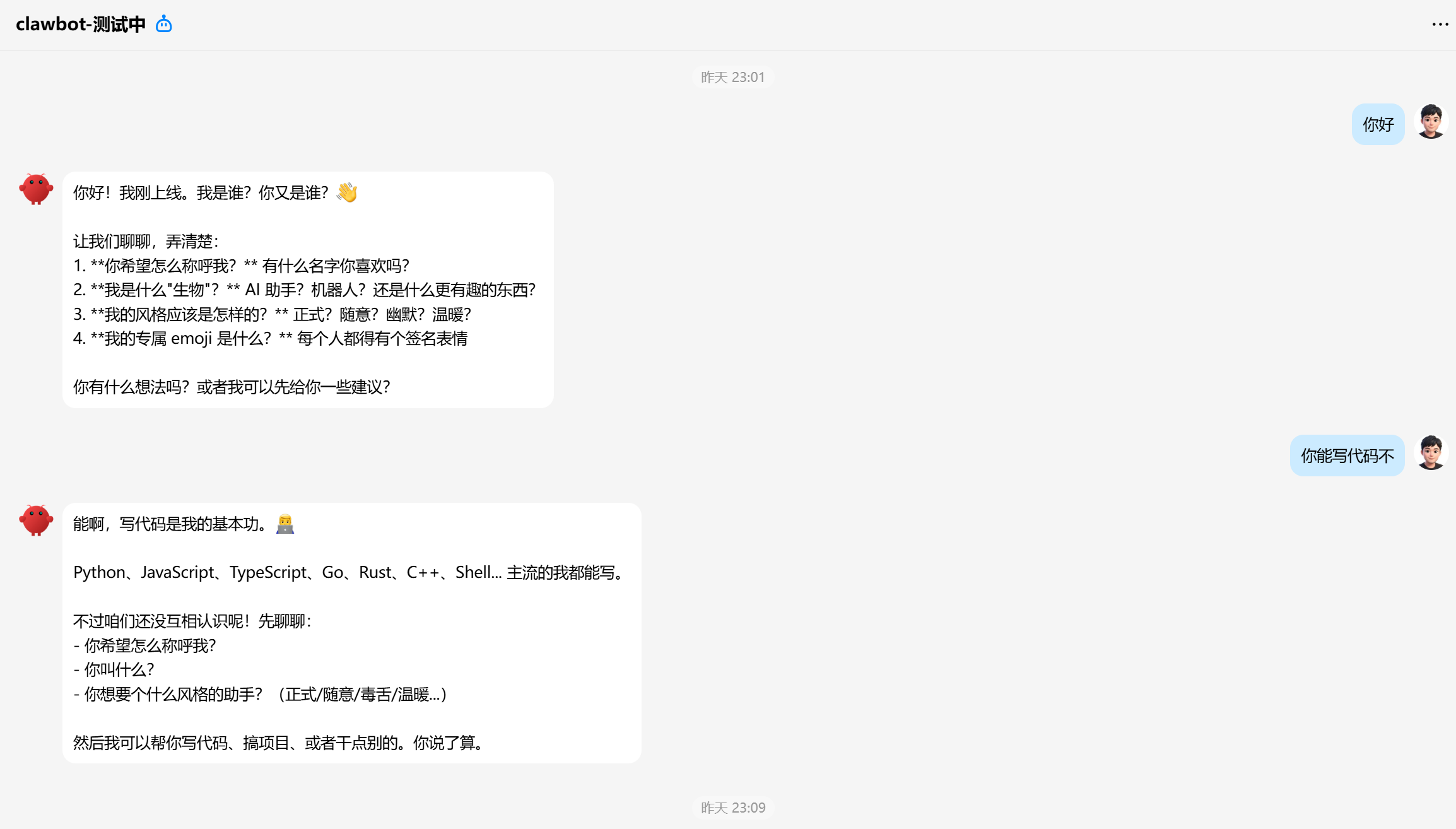 qqbot创建后就可以在QQ中与clawbot进行对话。