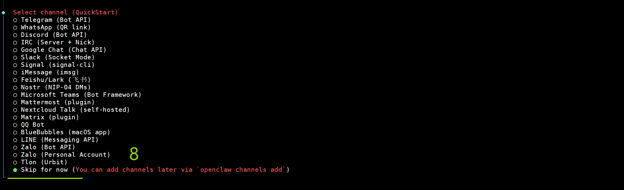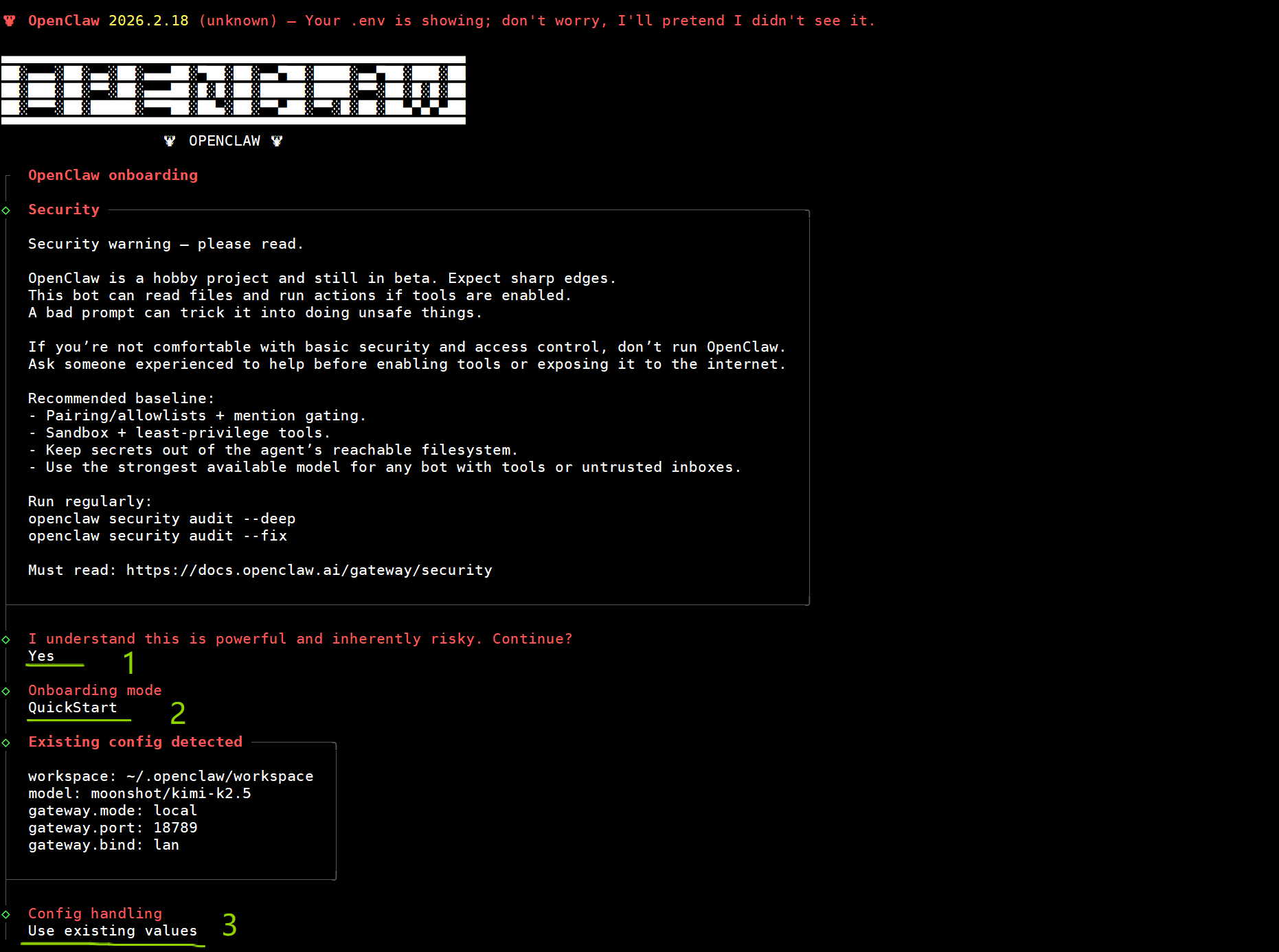 openclaw部署过程参考以上的命令,注意我标准的序号,按照序号和标准说明即可完成部署。