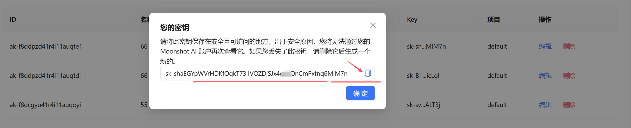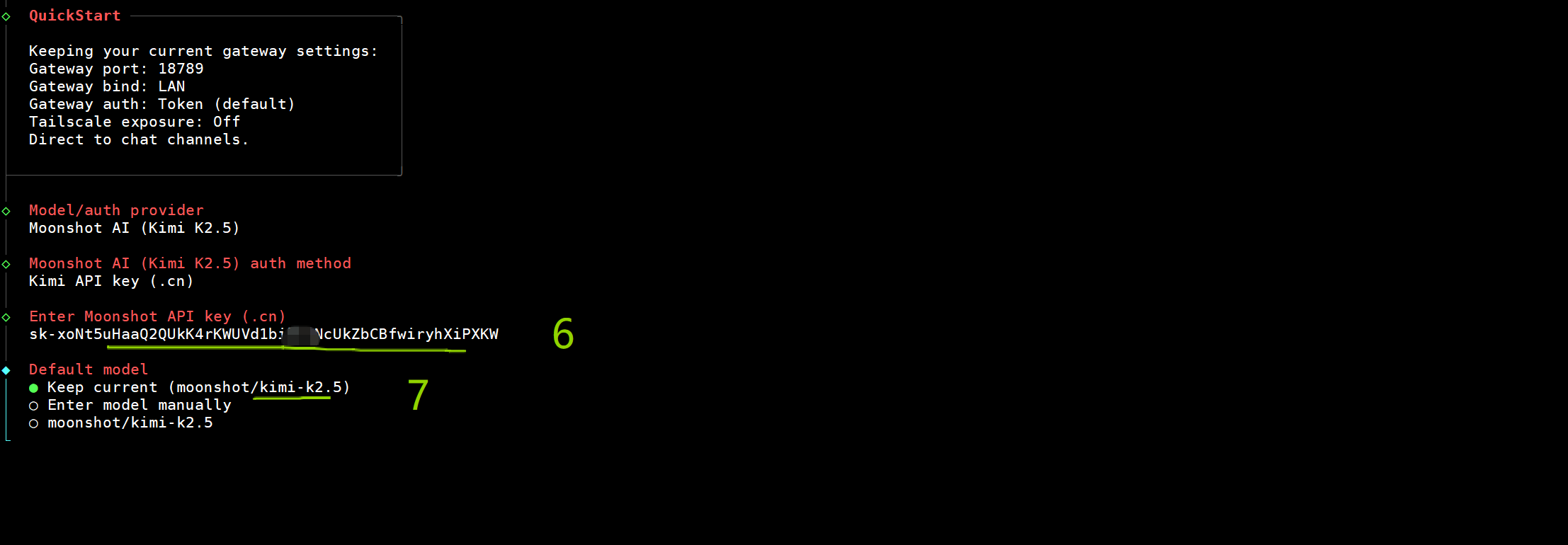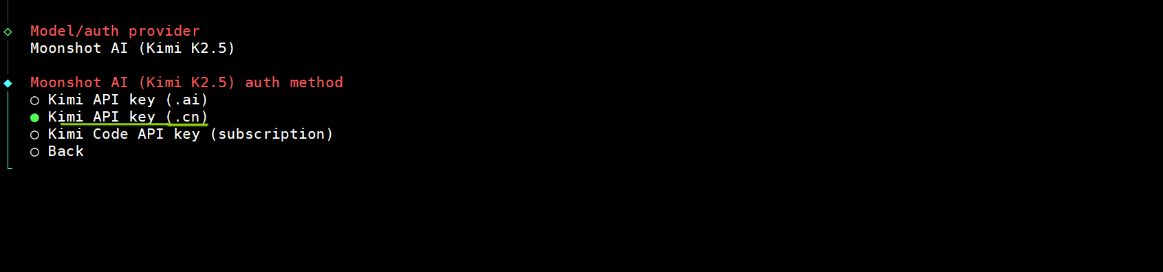 MoonshotAI (月之暗面) 平台 platform.moonshot.cn/console/api… 2.5,我这次用的MoonshotAI,如果要用Qwen或者Anthropic/Google中的gemini大模型上面截图中可以自行去选择即可,Qwen在openclaw中不用提供apikey有试用额度。