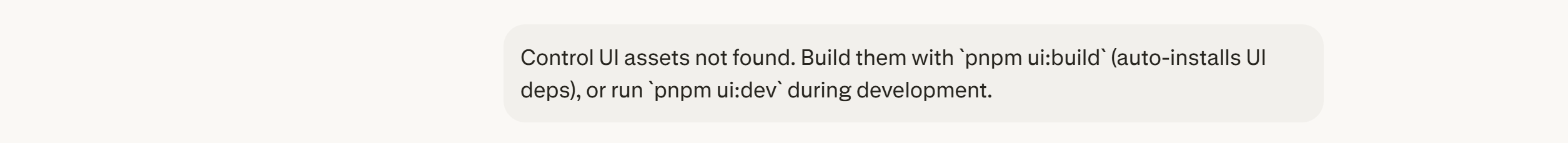 如果访问openclaw ch@t页面时出现以下错误,在终端执行pnpm ui:build,然后采用token去访问即可