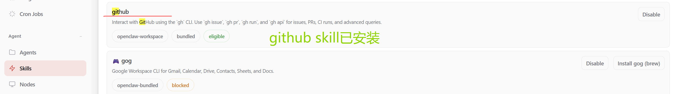 openclaw github skill效果如下。