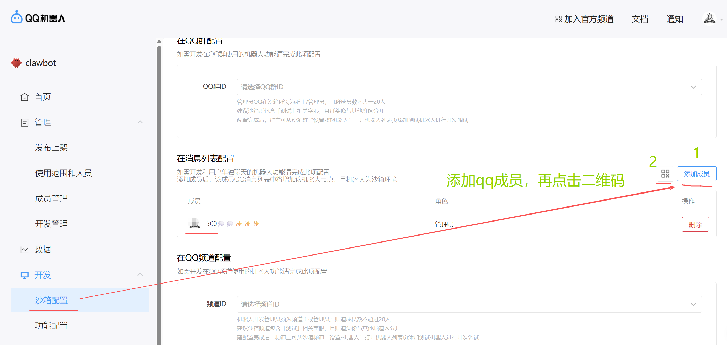 ,添加qq成员,再点击二维码,用手机扫描登录授权即可完成qqbot的创建。