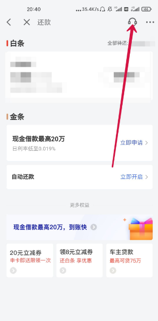 打开京东金融,点击红箭头所指。
