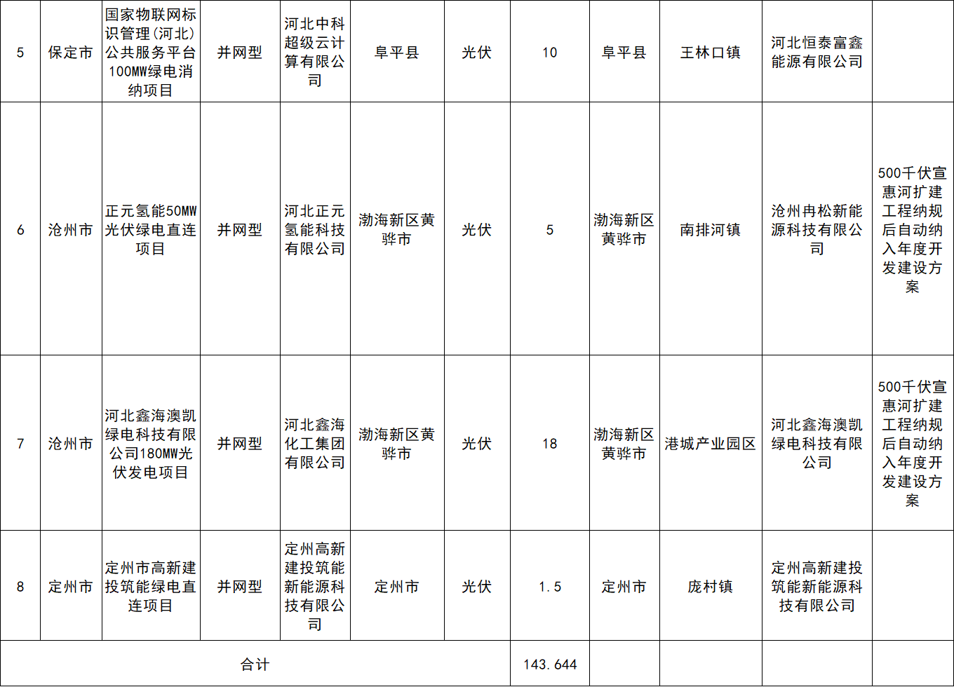 一、本次下达全省绿电直连项目共8个、143.644万千瓦。