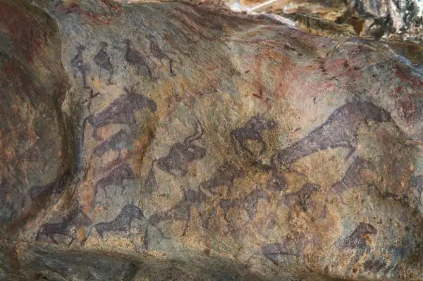 这幅岩画位于中国新疆阿勒泰地区的敦德布拉克洞穴中,描绘了旧石器时代晚期先民脚踩滑雪板、手持滑雪杖进行狩猎的场景。经考古专家考证,其历史可追溯至距今约1.2万年前,是目前全球已知关于滑雪活动的最早图像记录。
