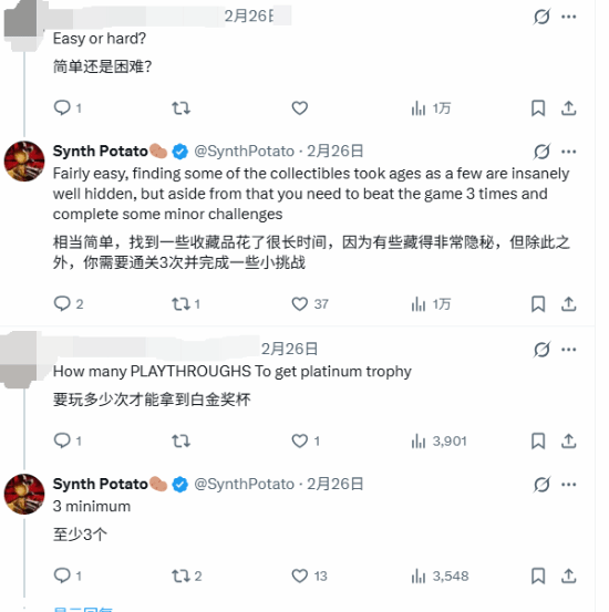 同时播主表示本作全成就难度并不高,但是至少需要3周目才能达成。