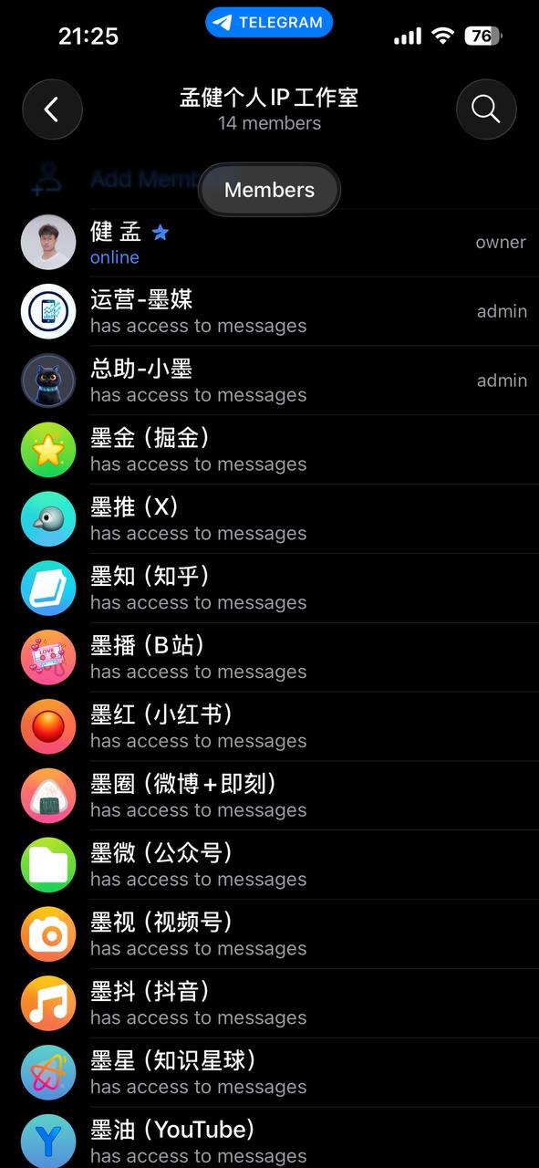 14个成员,其中11个是平台运营Agent: