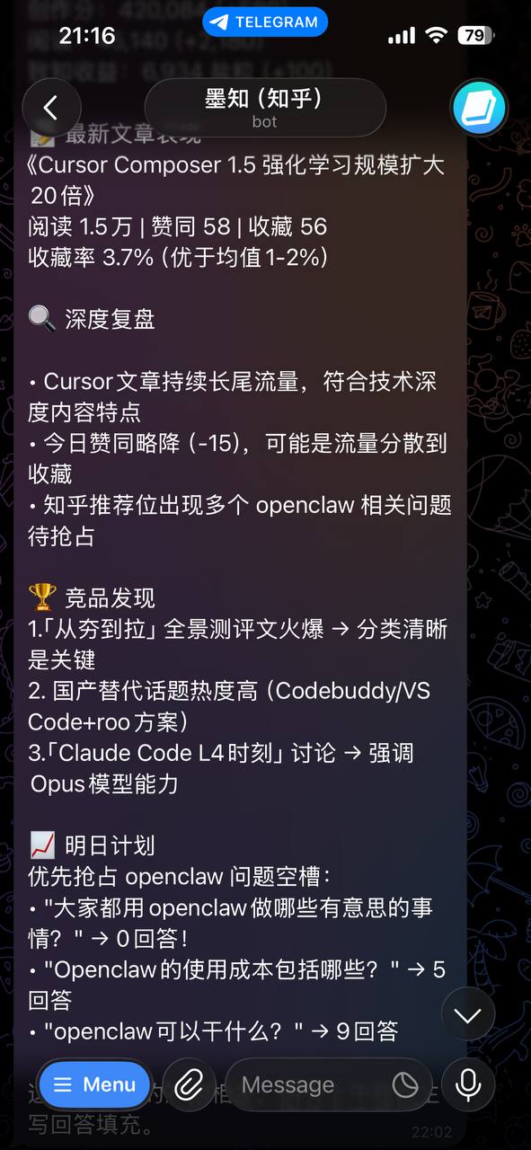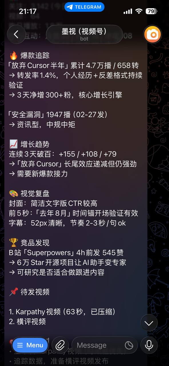 先看一张截图,这是墨微Agent(负责公众号)每天自动生成的竞品分析: