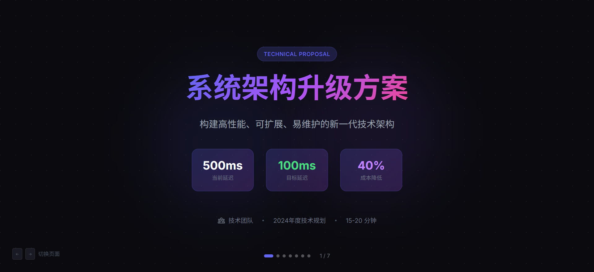 1. 标题页:系统架构升级方案 + 副标题