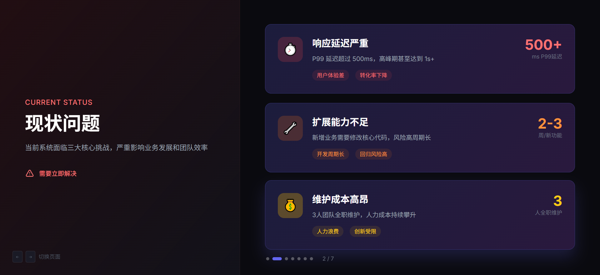 - 当前系统响应慢,P99延迟超过500ms
