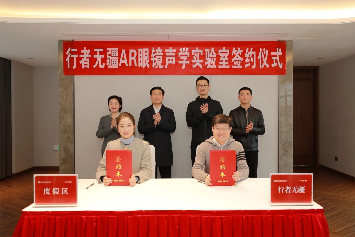 3月1日,行者无疆AR眼镜声学实验室合作签约仪式在吴中太湖之畔举行。行者无疆CEO姜公略、CFO张卓,区委shu记、qu长万利出席活动。