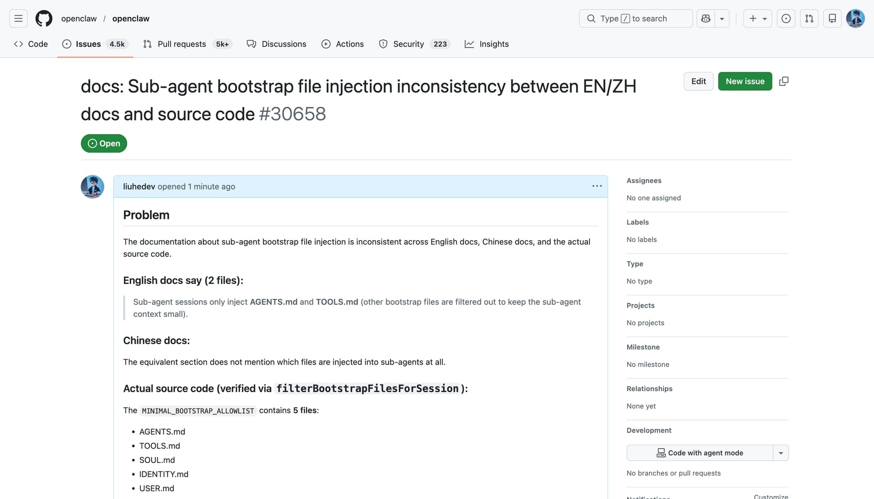 这个发现太典型了,我直接给 OpenClaw 官方提了一个 Issue: