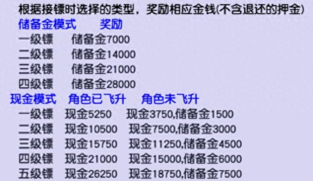 玩家可根据自身等级接取高级镖银。镖银越贵重,报酬也更丰厚。