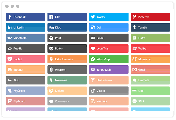 与 50 多个社交媒体网络兼容,并提供令人惊叹的设计选项和无尽的选择,包括 30 多种自动显示方法、无限的颜色和样式、任何位置的共享按钮的详细定制和优化选项。此外,还有强大的分析功能和一流的移动支持。
