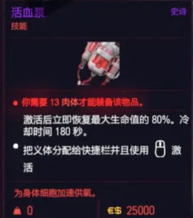 活血泵是赛博朋克中的一件义体武器,很多小伙伴都想知道活血泵要怎么获得。那么下面就让来告诉大家关于赛博朋克2077活血泵获得方法介绍,一起来看看吧。