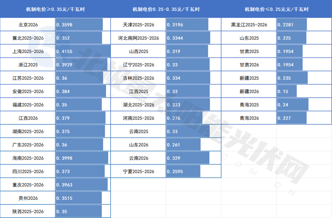 这主要得益于以“全额上网”为主的户用光伏仍可延续原有模式,并获准参与机制电价。政策出台初期虽经历短暂观望,但随着各地陆续公布机制电价结果,多个省份的电价水平超出市场预期,如上海达0.4155元/千瓦时,重庆0.3963元/千瓦时,浙江0.3929元/千瓦时,安徽0.384元/千瓦时……清晰的电价预期为投资方调整商业模式、重启项目提供了关键支撑,市场情绪也因此逐步回稳。