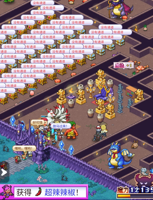 说到冒险者,这里要重点讲一下,不同职业的冒险者走法完全不一样。第一种是普通冒险者,就按你铺的路线走,不管路通向哪里,老老实实走过去,这类最省心。第二种是骑士、勇者这类,会自动找最短路线冲向魔王,而且就算当时打架人多被挤到旁边了,也会在旁边干等着,等空了再上去打,不会半途放弃。第三种就麻烦一些,比如花商、宝物猎人、圣诞老人这类,他们只认宝箱,路上碰到战斗,人数够多的话会直接绕着走,继续找宝箱,平时漏怪基本上,都是这几个职业干的。