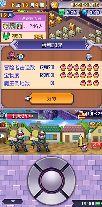 实际操作流程大概是这样,按照自己的清怪速度来定路的长短,缺钱了放被褥,路通向魔王和高属性怪的房间,路口尽量收窄,能减少漏怪的概率。路尾放宝箱的房间,用堵路开路的方法刷危险值,怕漏怪就直接堵死。中途靠探险副本和魔王策略持续涨危险值,到了每年结算的时候把路打开领蛋糕,结算时间是12月第4周第11格,进度条右边一共17格,大概4周走一格,自己手速快的话,7格8格打开也来得及。