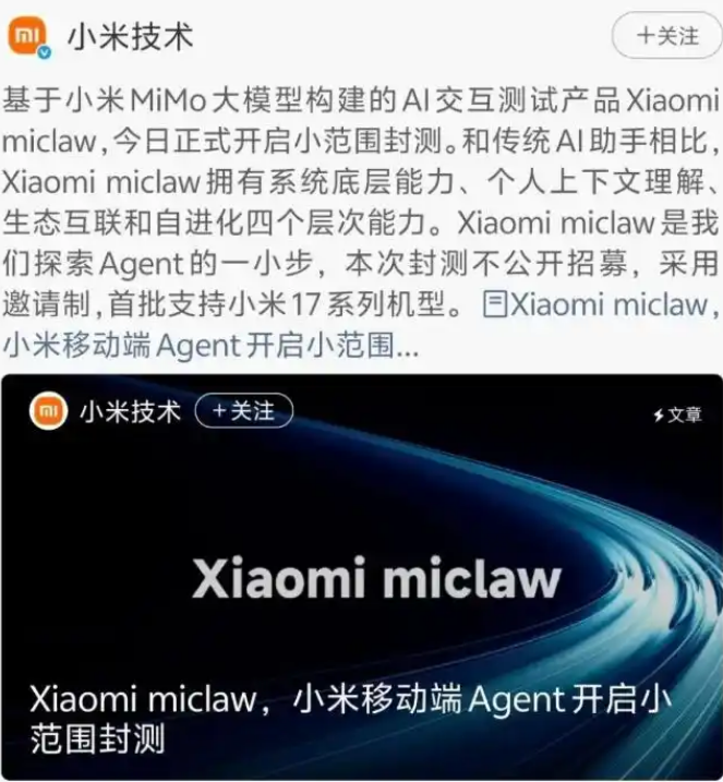 Xiaomi miclaw介绍
