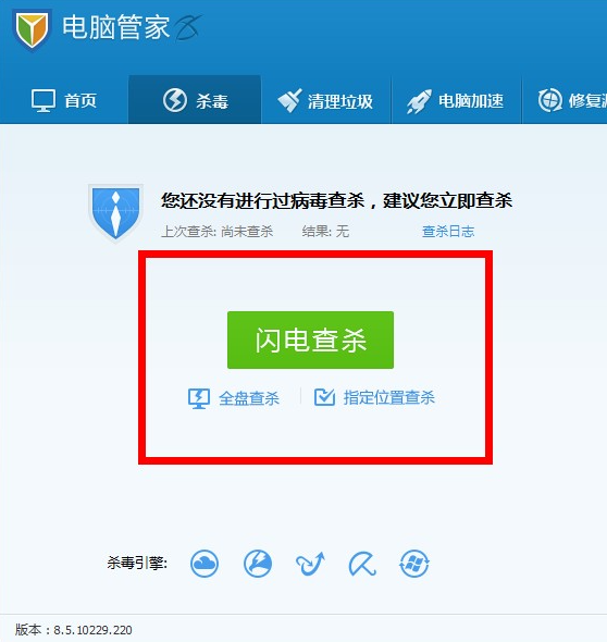 2、在“杀毒”一栏中点击“全盘查杀”。
