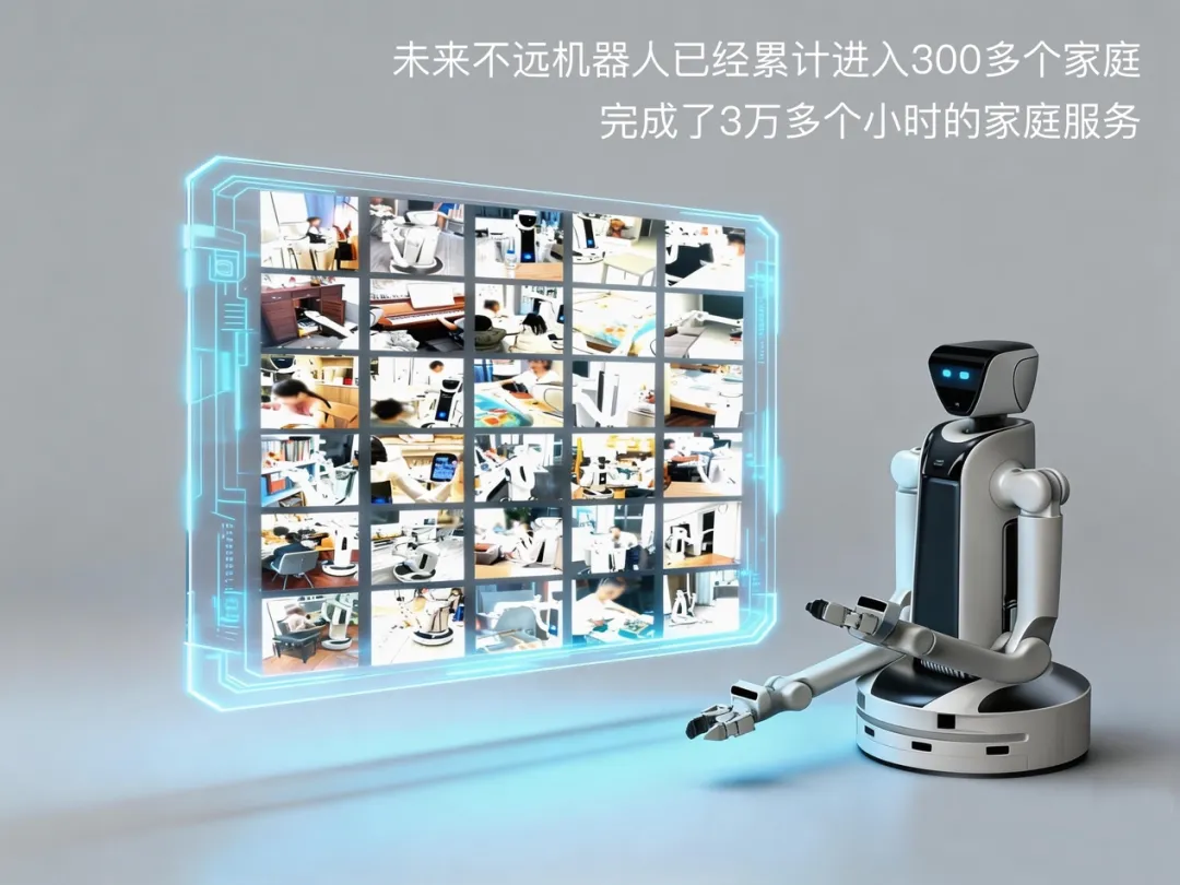 作为国内首个脱离 PPT 和视频宣传进入真实家庭使用的家庭通用机器人公司,截止 2026 年 3 月,未来不远机器人已经累计进入 300 多个家庭,完成了 3 万多个小时的家庭服务。并从今年 1 月开始实现真实家庭环境超过 1 个完整月的无人为干预、无故障、无意外持续高频运行,每日运行任务涉及清洁收纳,宠物儿童老人陪伴,监控安防,日常居家服务等,用户满意度高达 97%,且样机持续满档租赁试用。如此大规模,长时间实现机器人与真实家庭环境无干预无意外的高频互动,是家庭通用机器人领域重要的里程碑,为机器人落地家庭,实现商业化注入一针强心剂。