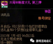 从近5年的DNF周年庆奖励来看,徽章基本不会缺席周年庆,而且送的徽章越来越好,相信今年应该会送[灿烂徽章自选礼盒]与[梦想白金徽章礼盒],只是不知道会不会送[玲珑徽章自选礼盒]。