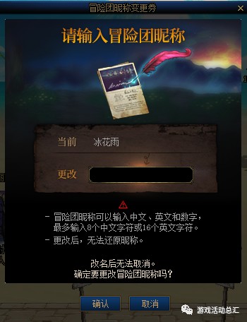 由于这类道具会助长游戏骗子的声势,所以注定不会频繁出现,花雨预计今后只会在每年的周年庆送1张[冒险团昵称变更券],成为周年庆标志性奖励,此外没有其他途径获取(昵称违规强制改名除外)。