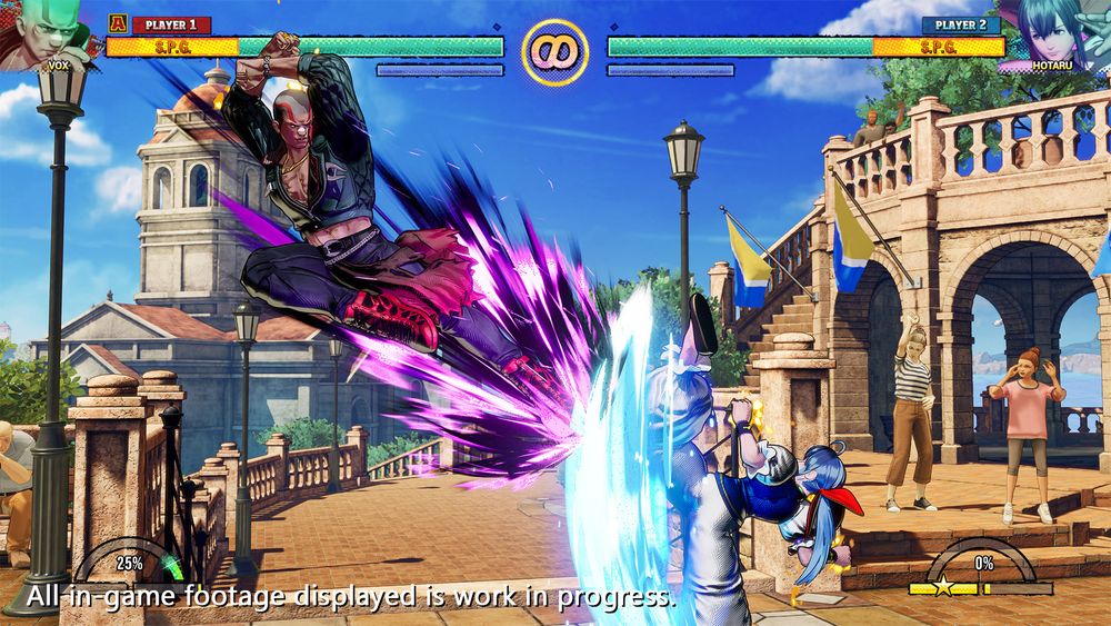歷代人气角色与新角色等 17 名,加上「SEASON PASS 1」DLC 角色 5 名,合计 22 名角色决定参战!以刺激感官的独特「美术风格」呈现出的斗士们,将在南镇展开激烈碰撞!
