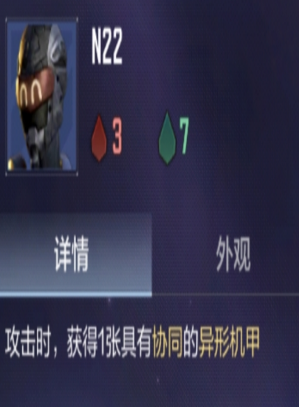 N22是阵容中唯一的蓝色品质角色,起手获取概率较高。其攻击动作可稳定生成1张异形机甲类协同牌,是前期协同牌数量积累的核心来源,为中后期协同体系搭建奠定基础。