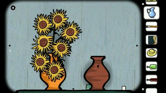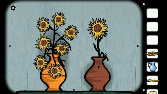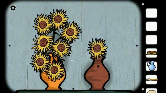 5、把向日葵插到花瓶里(是不是很像梵高的名画向日葵),点击向日葵,等花全变小时,右边花瓶的向日葵会自己升上来,得到钥匙