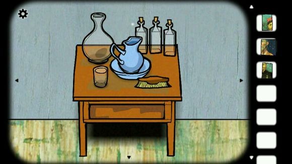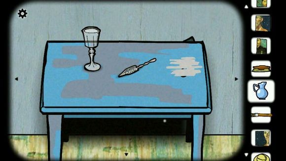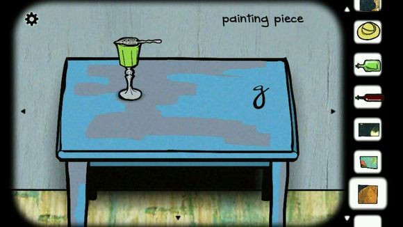 3、用刷子刷桌子后会获得一个字母,在杯子上依次放上勺子、方糖然后倒满酒(绿色),方糖化掉后会得到最后一块碎片