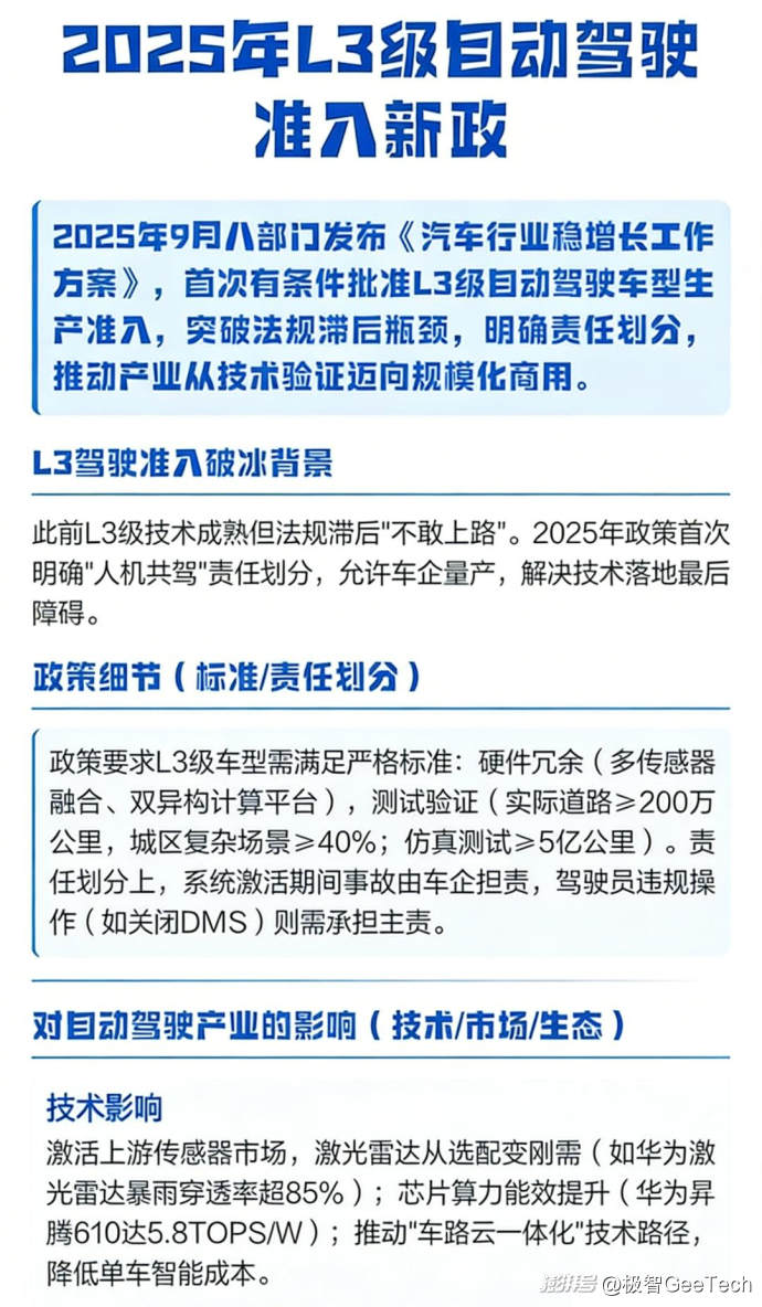 但我们必须承认,无论是否跳过L3阶段,L4的核心技术难题——全场景感知、全自主决策、全冗余兜底、海量数据闭环都无法回避。L3的存在,无疑推动了自动驾驶核心技术的普及和成熟,它让多传感器融合、高算力芯片、自主决策算法等核心技术,实现了大规模量产应用,降低了L4技术的研发和量产成本,为整个行业的技术迭代奠定了基础。即使是特斯拉、Waymo,也间接受益于L3推动的供应链成熟,比如激光雷达成本的下降、高算力芯片的普及等,都与L3的量产落地密切相关。