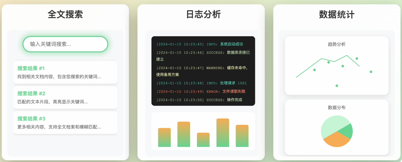 像全文搜索、日志分析、数据统计这些需要搜索能力的场景,ES 都能轻松搞定。