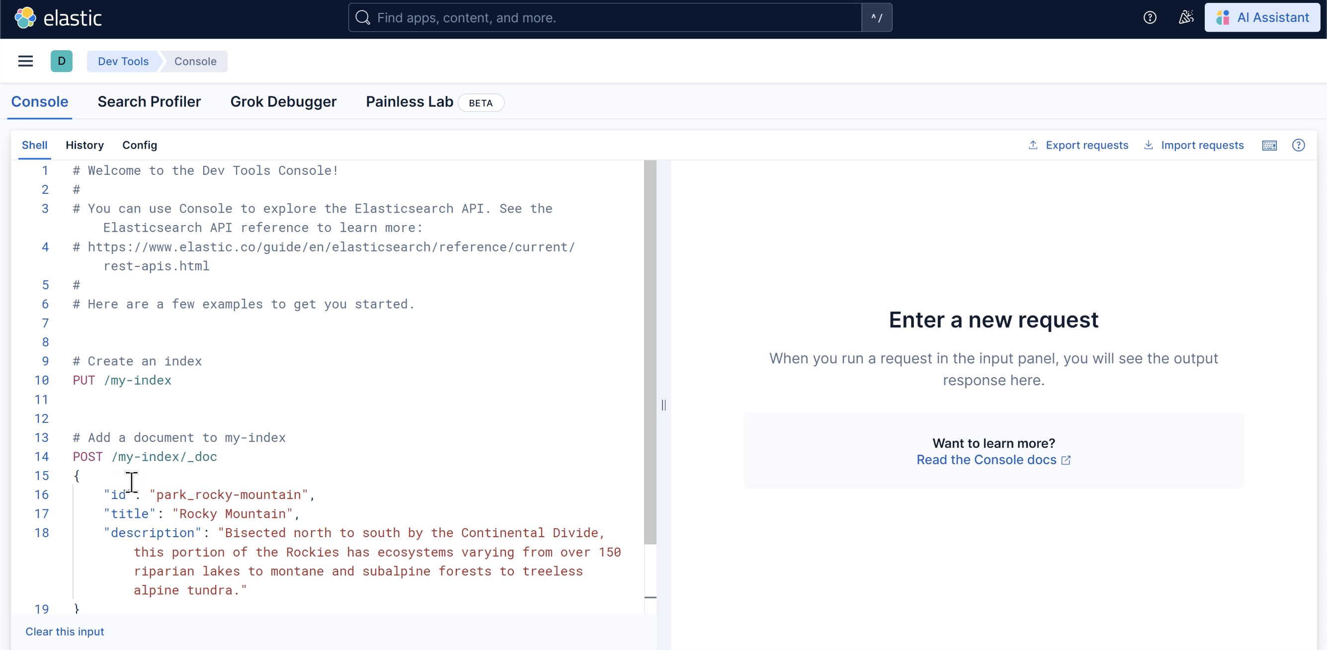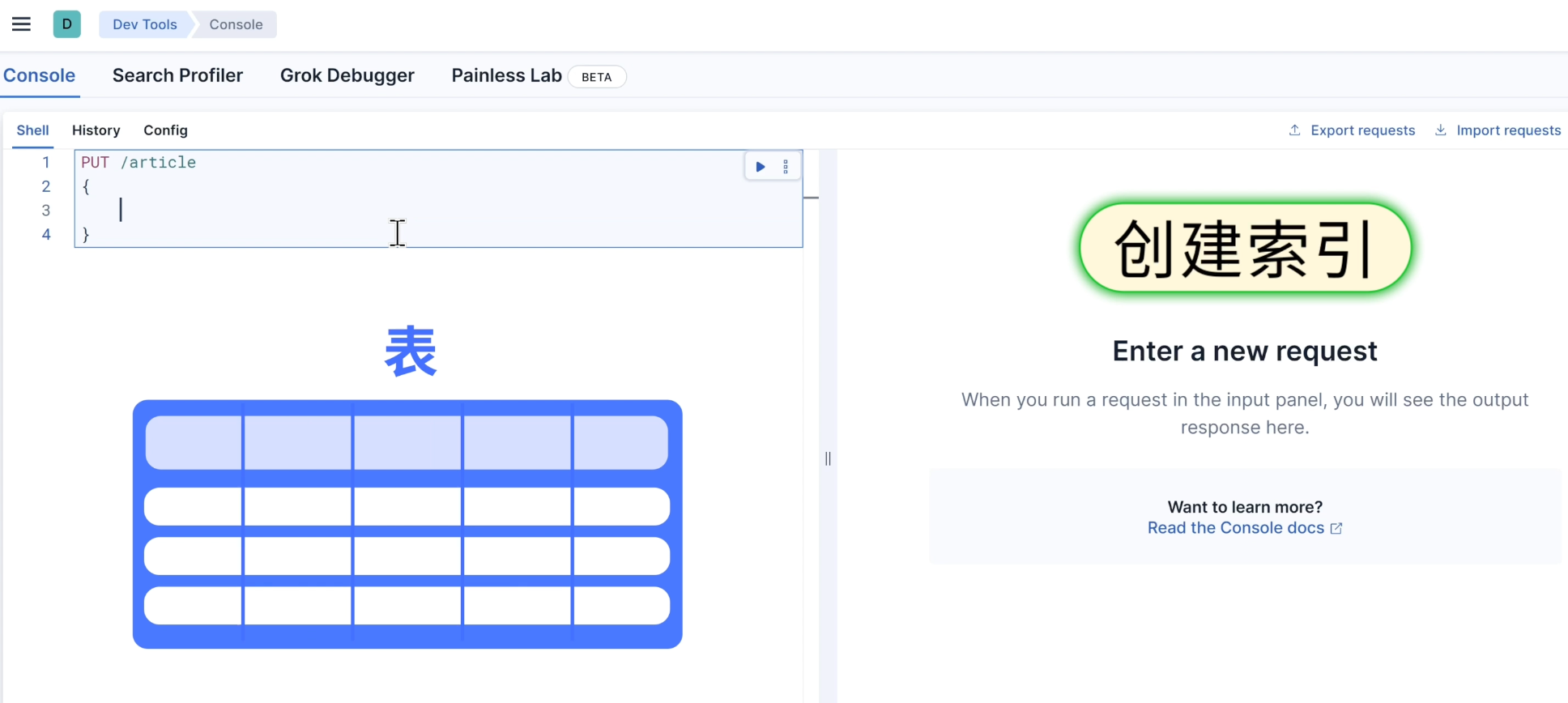 在 Kibana 开发工具中输入这段代码: